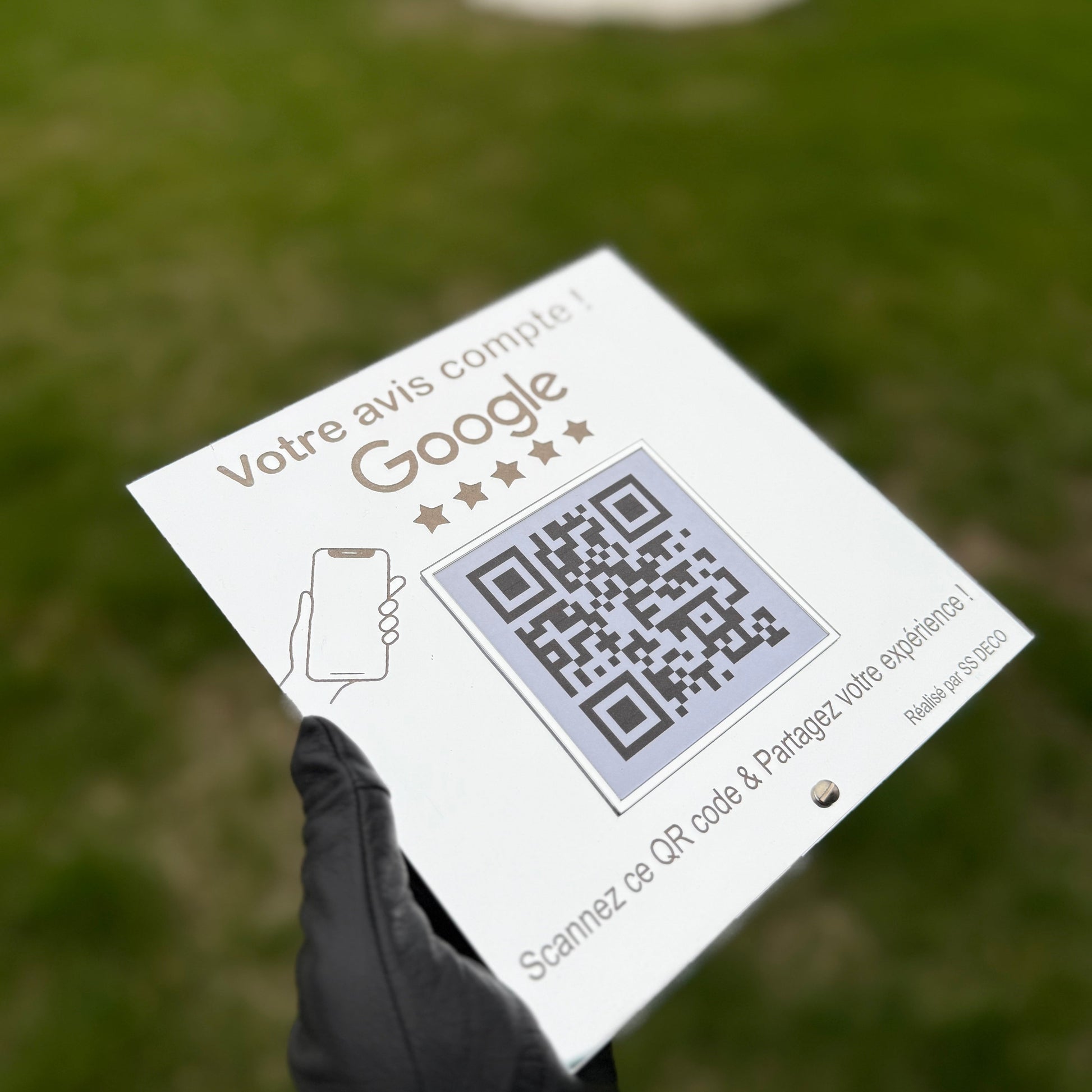 Ce cadre en plexsiglas miroir personnalisé est à la fois décoratif et pratique : il affiche votre QR code Google Avis pour que vos clients puissent partager leur expérience instantanément.